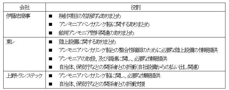 上野グループの海運会社である上野トランステック株式会社(本社:神奈川県横浜市、代表取締役会長兼社長CEO兼COO:上野 孝、以下「当社」)は、伊藤忠商事株式会社(本社:東京都港区、代表取締役社長COO:石井 敬太)、東レ株式会社(本社:東京都中央区、代表取締役社長:大矢 光雄)と舶用アンモニア燃料利用の社会実装を目指し、日本国内における舶用アンモニア燃料供給拠点の整備に向け、安全性の検証に加え、具体化に向けた必要設備や許認可関係、更には舶用アンモニア燃料供給の取引条件等を検討することを目的とした共同開発に関する覚書を締結しました。