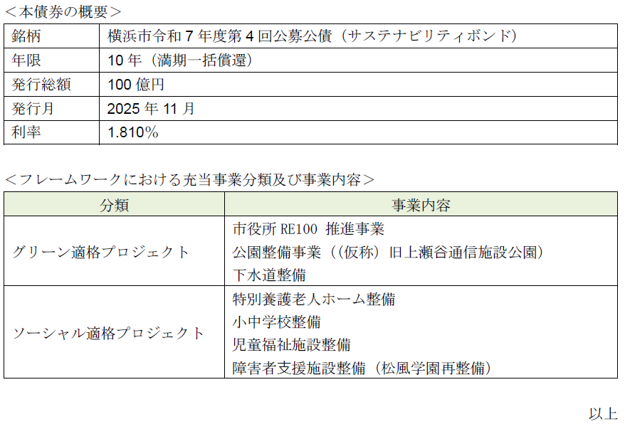 上野グループホールディングス株式会社(本社:神奈川県横浜市、代表取締役社長:栁川岳、以下「当社」という)は、横浜市が発行するサステナビリティボンド(横浜市令和7年度第4回公募公債(サステナビリティボンド)、以下「本債券」という)に、このたび投資しました。