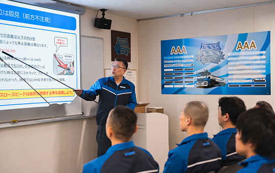 事業所の垣根を超え、社歴10年未満のドライバーを集めて実施されます。会社のヴィジョンを共有し「プロドライバー」の使命を認識していただいています。